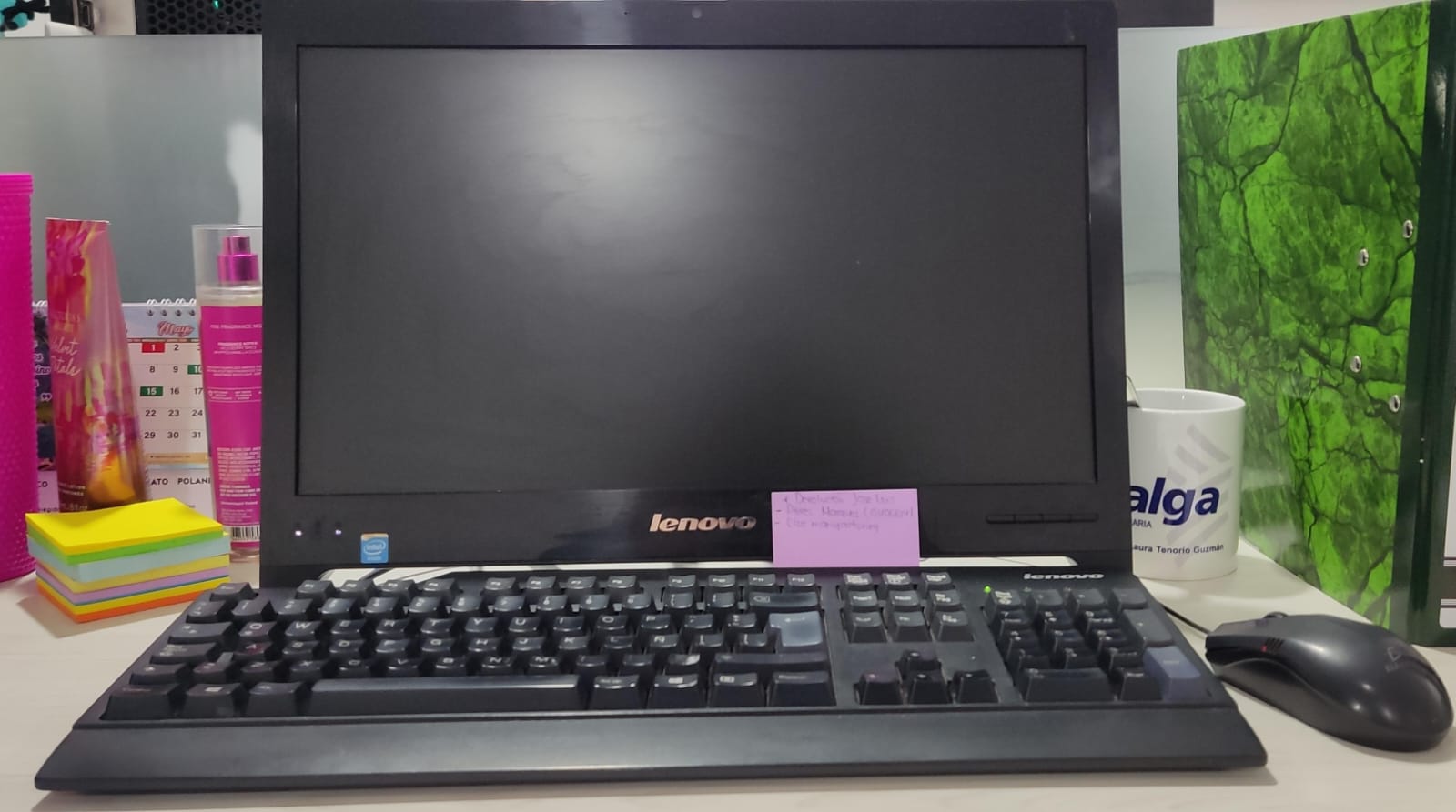 Componentes: Monitor, teclado, mouse, antena de red, cableado, CPU.